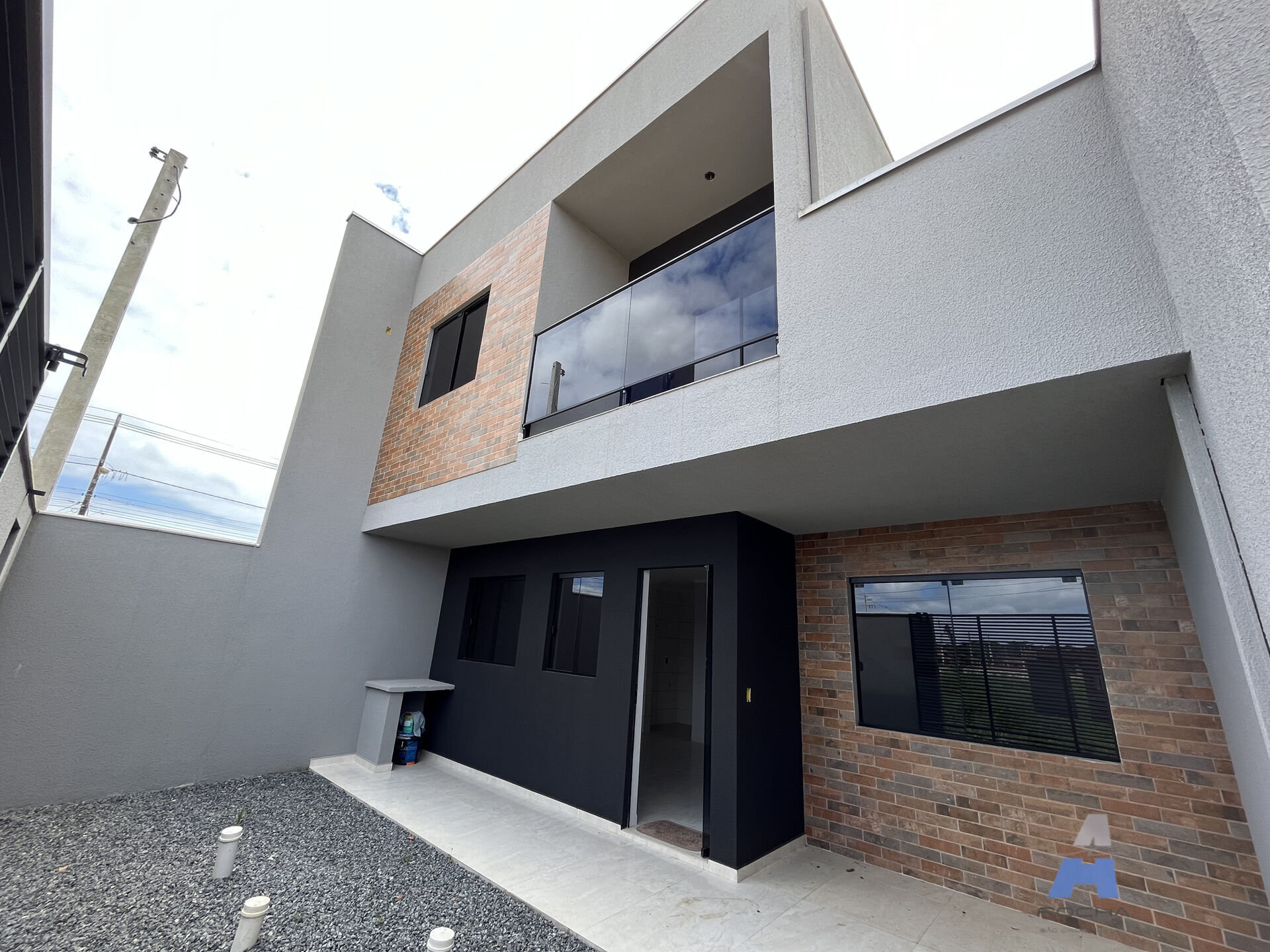 -Piso superior: Sacada com guarda corpo em vidro, 2 dormitórios e 1 banheiro social completo.